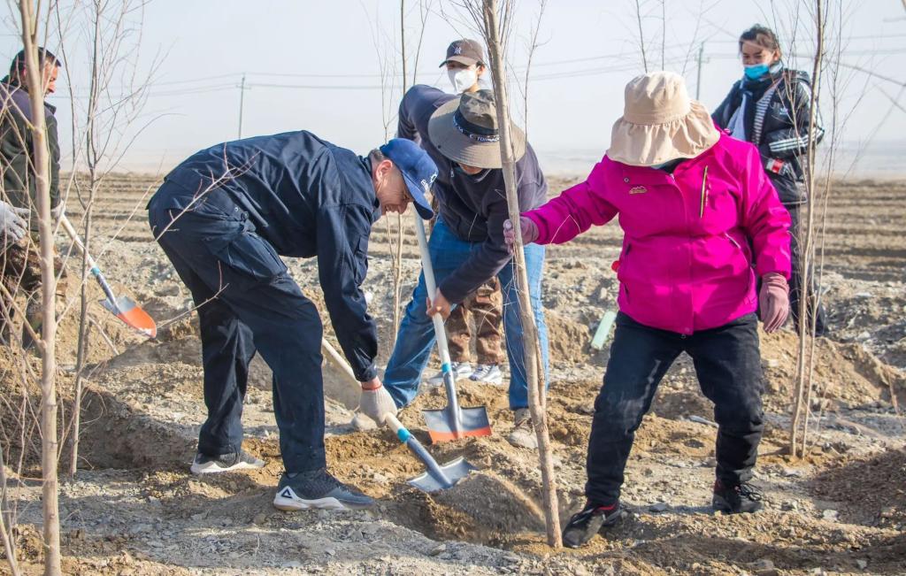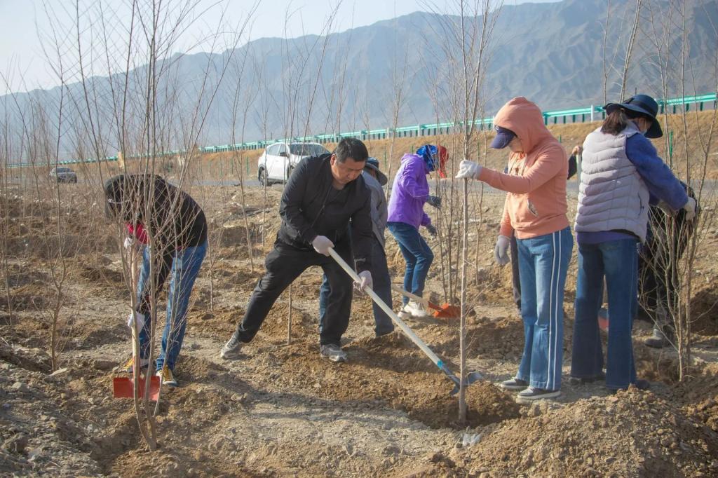 在植树现场,各族干部群众栽下树木,挥铲填土、扶植苗木,在春风中种下了数千株青绿可人的树苗。“连日来,我镇各族干部群众在走在前、做表率、当示范,大家齐栽民族同心树,共建民族团结林,全面唱响铸牢中华民族共同体意识的时代强音,用实际行动践行绿水青山就是金山银山的理念,切实推动生态建设,让绿色成为大河沿子镇靓丽的名片。”大河沿子镇党委委员瓦尔森说。