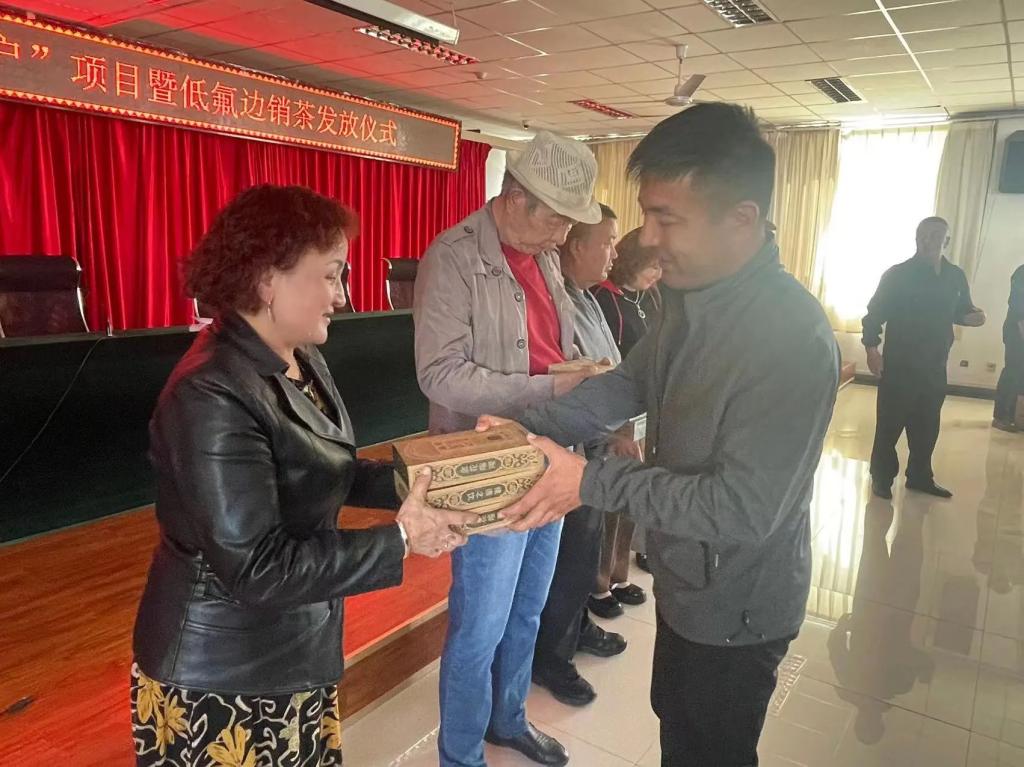 领到低氟边销茶的额勒森陶勒盖北村村民辛天成说:“今天收到这个茶叶,我感到十分高兴,这不仅是对我们身体健康的关爱,也是对我们精神上的巨大鼓舞。政府为我们着想,免费发放低氟边销茶,让老百姓深切感受到了党和政府的关怀和关心,也让我们对健康饮茶有了新的认识。”