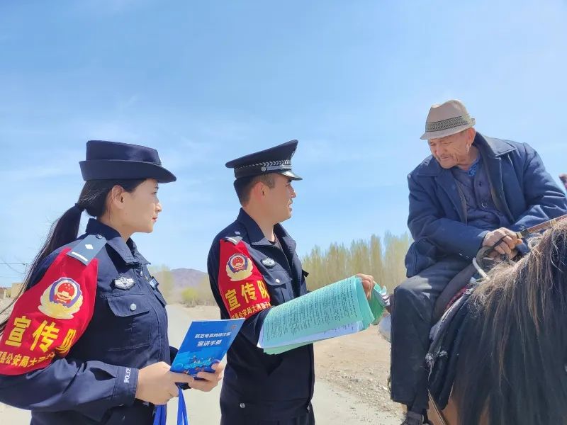 “诈骗手段花样多、不听不信不转账”“凡是自称客服退款要验证码或先交钱的都是诈骗”……在景点,民警们向过往的牧民、游客介绍如何防范电信网络诈骗、毒品的危害、出行注意事项等,引导群众正确佩戴安全头盔、规范使用安全带,自觉抵制酒后、超速、超员、疲劳驾驶以及开车接打电话等交通违法行为,安全文明出行。