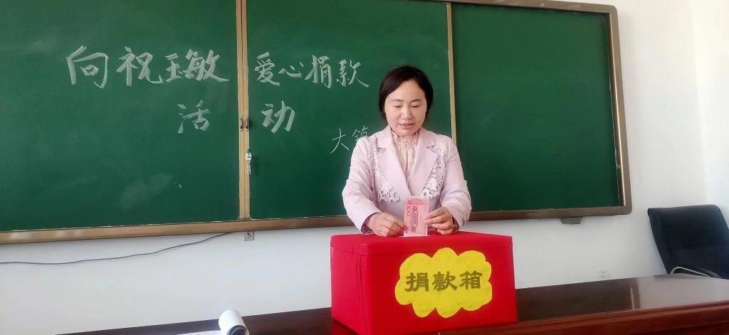 大河沿子镇第二小学严春霞书记在得知此事后,立刻号召全校师生向祝玉敏捐款。在严书记的号召下,教师纷纷伸出援助之手。学生也在班主任的号召组织下开始捐款。有的孩子抱着自己的储蓄罐来学校,有的孩子毫不犹豫把攒起来一元两元的零花钱捐上来……本次捐款总计10327元,教师捐款2870元,学生捐款7457元。