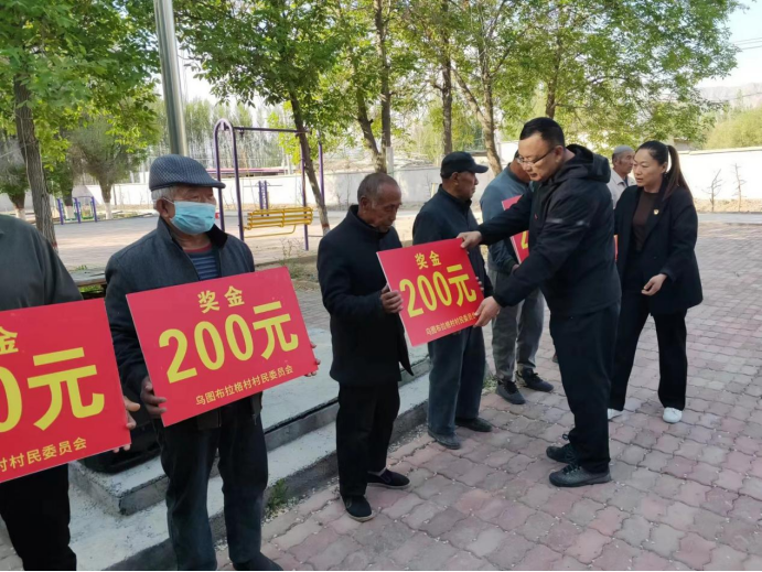 2023年5月8日上午,乌图布拉格村利用升国旗时机,开展“美丽庭院”表彰活动,助力乡风文明。