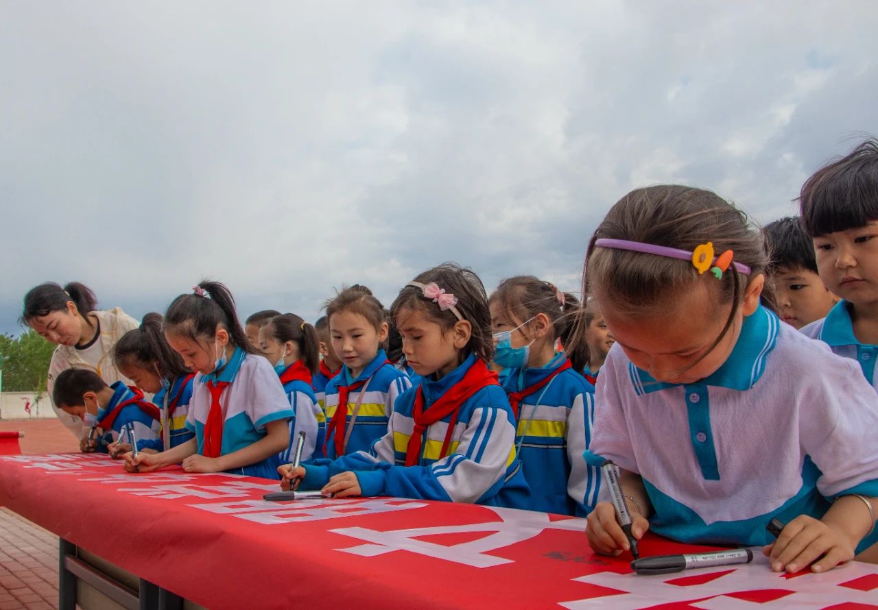 同学们在印有“创建文明校园,争做文明学生”的横幅上用笔墨签下自己名字,也签下了参与文明校园创建的承诺,以校园小主人的身份,宣传文明理念,倡导文明举止,真正做到了“人人都是文明宣传员”,用行为举止扮靓校园,也为创建文明校园贡献了自己的力量。