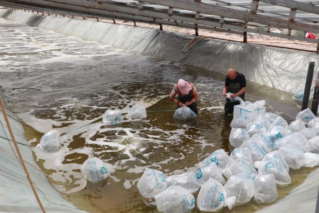 待各项准备工作完成之后,一袋袋活蹦乱跳的虾苗被缓缓地投放到塘里。他一边投放虾苗一边介绍说,“这种虾苗具有抗病毒性强、抗菌性强、产量高等特点。在投放前,我们已经完成了水塘增氧、塘底清淤等工作,为虾苗营造了一个良好的生长环境。”