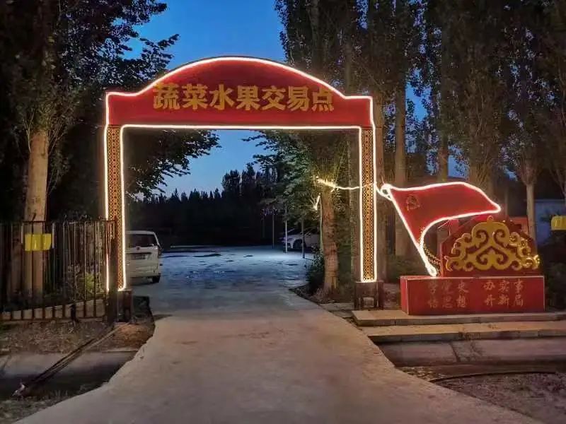 牌匾灯带安装完毕标志着沃尔塔布拉克村村级“蔬菜瓜果交易点”建设完毕。