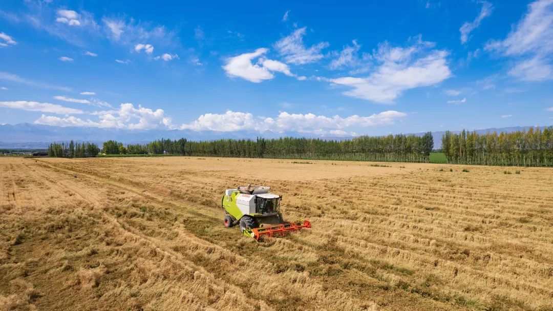 今年杜洪江采用了“小麦+青贮玉米”的连作复播模式,实现一年两茬种植。在小麦收割完成后,开始复播青贮玉米,实现小麦、青贮玉米“双收益”。 大河沿子镇党委委员、副镇长赛力克江介绍说,大河沿子镇今年的小麦种植面积是3500亩,截至目前,全镇小麦收割了2500余亩,山区的1000亩计划7月20左右完成收割工作。据了解,从播种到小麦丰收,精河县农业农村局组织大量农业技术人员,深入麦田,指导种植户采用新品种、运用新技术、新方法、新科技种植小麦,结合小麦长势,指导种植户做好各项田管工作,助推小麦产量和品质逐年提高,提升种植户种粮积极性。