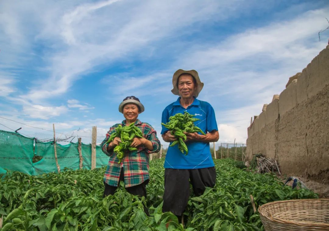 走进大河沿子镇浩斯托干村大棚蔬菜种植户陈昌俊的种植基地,辣椒挂满枝头,长势喜人。她正忙着和家人采摘、分拣、装袋、过称,及时销售,保障市场供应。她向记者介绍道:“现在主要采摘的是辣椒、豇豆,采摘下来的蔬菜送往镇上的各个菜店和博乐批发市场。”