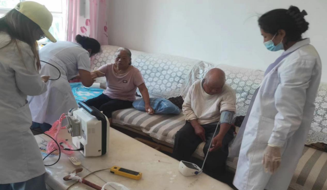 为保障别斯村村民人人享有基本医疗服务,全面提升村民健康水平,让村民在家门口就能享受到优质医疗健康服务,8月9日,大河沿子镇卫生院在别斯村组织开展为行动不便的村民进行免费体检。