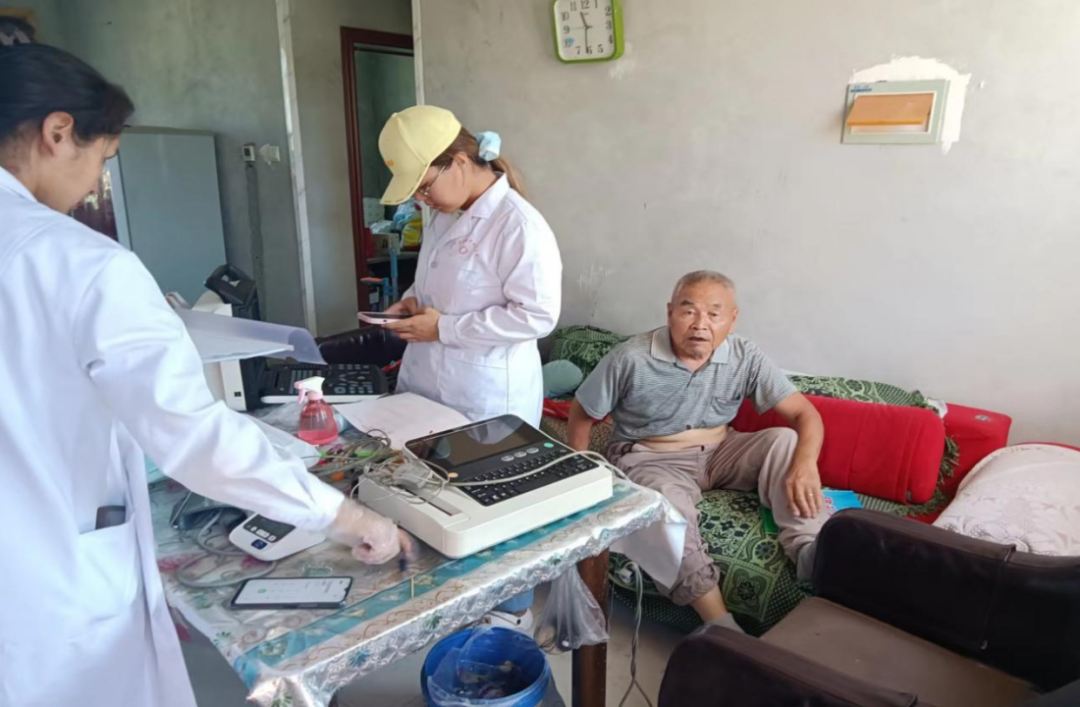 由网格长和大河沿子镇卫生院医务人员组成的体检小组利用半天时间为老人及行动不便人员进行体检。检查项目主要包括血常规、尿常规、肝肾功能、血压、血糖、心电图、B超等各项检查等多项内容。