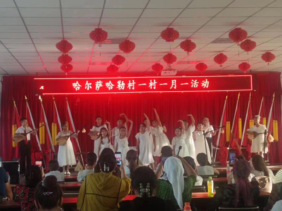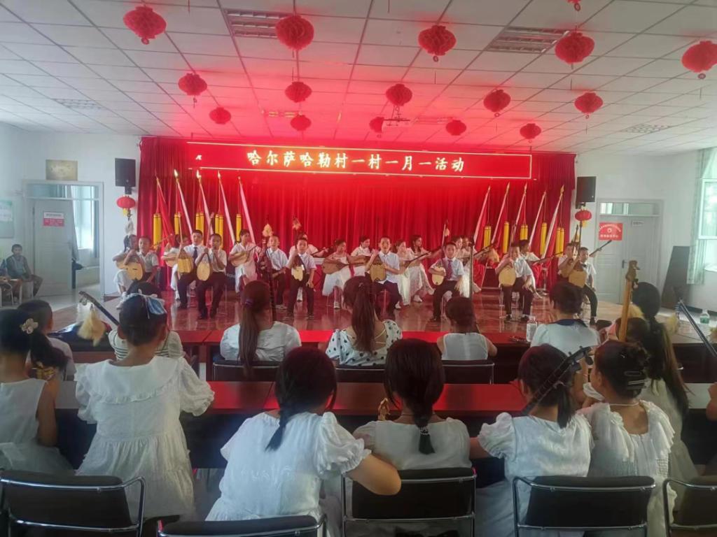 近日,哈尔萨哈勒村活动室开展了文艺汇演活动,活动室里音乐醉人,舞姿翩翩,演出气氛欢快热烈,哈萨克族乐器冬不拉是本场演出的“主角”。弹奏的曲子深受广大村民的喜爱,弹奏者们通过好看的服装,婀娜多姿的民族舞蹈反映出他们对音乐的热爱,他们用动听的歌声抒发对党和政府的感激以及对生活的热爱。