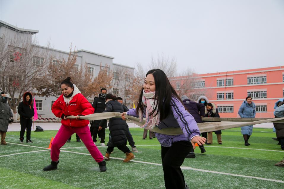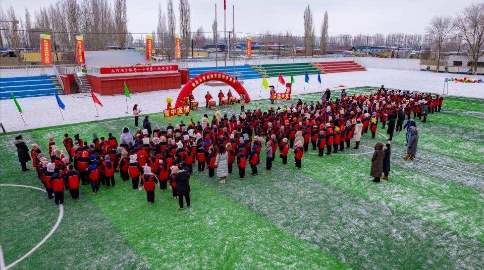 1月5日下午,精河县大河沿子镇第一小学在操场上开展“相约冰雪运动 开启快乐童年”活动,活动包括20米雪地圈接力赛、雪地拔河等项目,共计200余名师生参与。