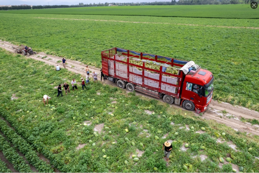 盛夏时节,瓜果飘香。眼下,精河县大河沿子镇550亩西瓜迎来了成熟采摘期,一个个清脆甘甜的西瓜走俏市场,敲开了特色种植助力乡村振兴的“甜蜜之门”。