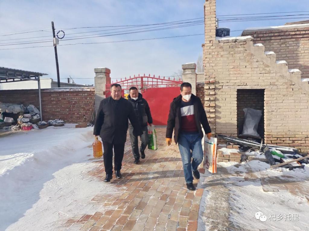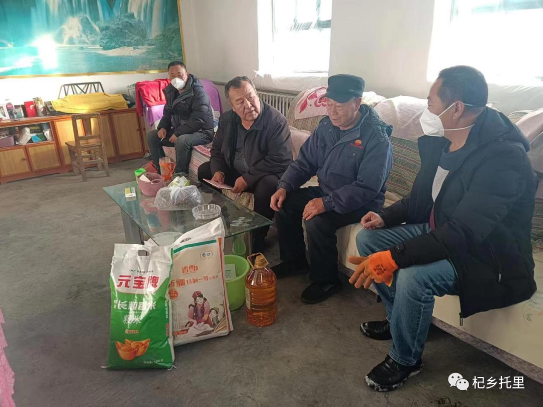 2023年春节来临之际,精河县商工局驻克孜勒加尔村工作队组织村干部开展走访慰问活动。1月12日,第一书记、工作队队长波拉提、党支部副书记王希宝,村委会副主任杨小龙,村干部李欠欠,先后看望慰问了曹福、丁忠芳、翟世民等8户脱贫户;付增典、丰光明、齐先堂、张桂兰等老人和困难群众11户,为他们送去节日祝福,送去了大米、面粉、清油等节日慰问品,价值折合人民币3900元,送去了党的关怀与温暖。同时入户宣传党的二十大精神,发放学习宣传党的二十大精神群众读本一书。