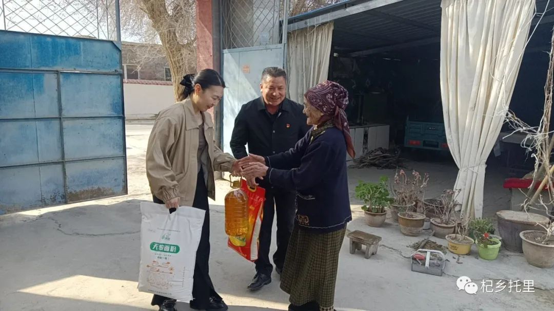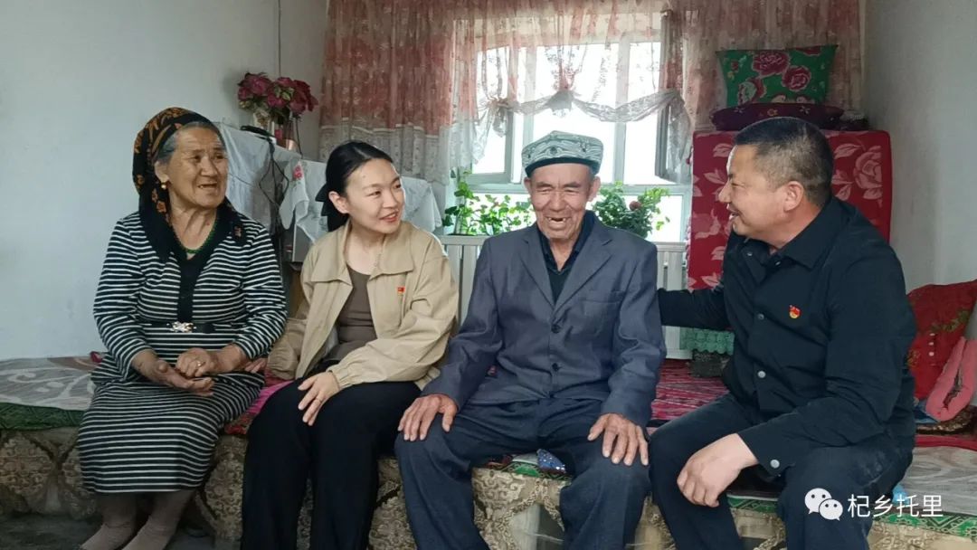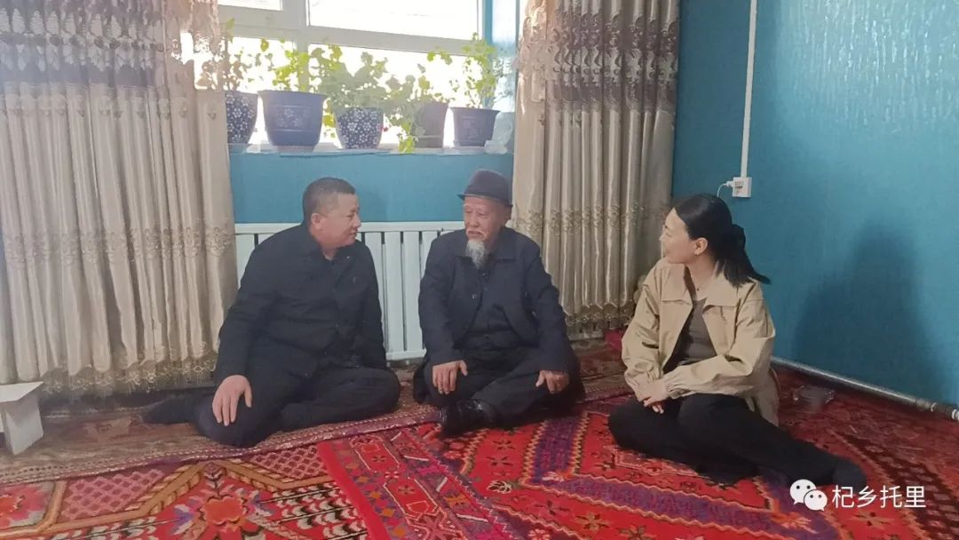 近日,为做深做实“访惠聚”驻村工作,体现党和政府对“四老”人员的关怀,充分发挥“四老”人员引领带头作用,精河县托里镇永集湖村第一书记、工作队队长朱静和村党支部书记马金生带着慰问品,看望慰问了本村12名“四老”人员,为他们送去大米、面粉、清油等生活用品,传递党组织的关怀与温暖。