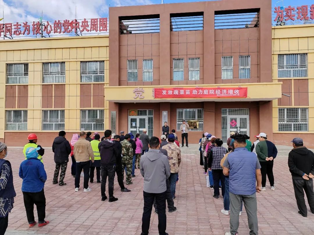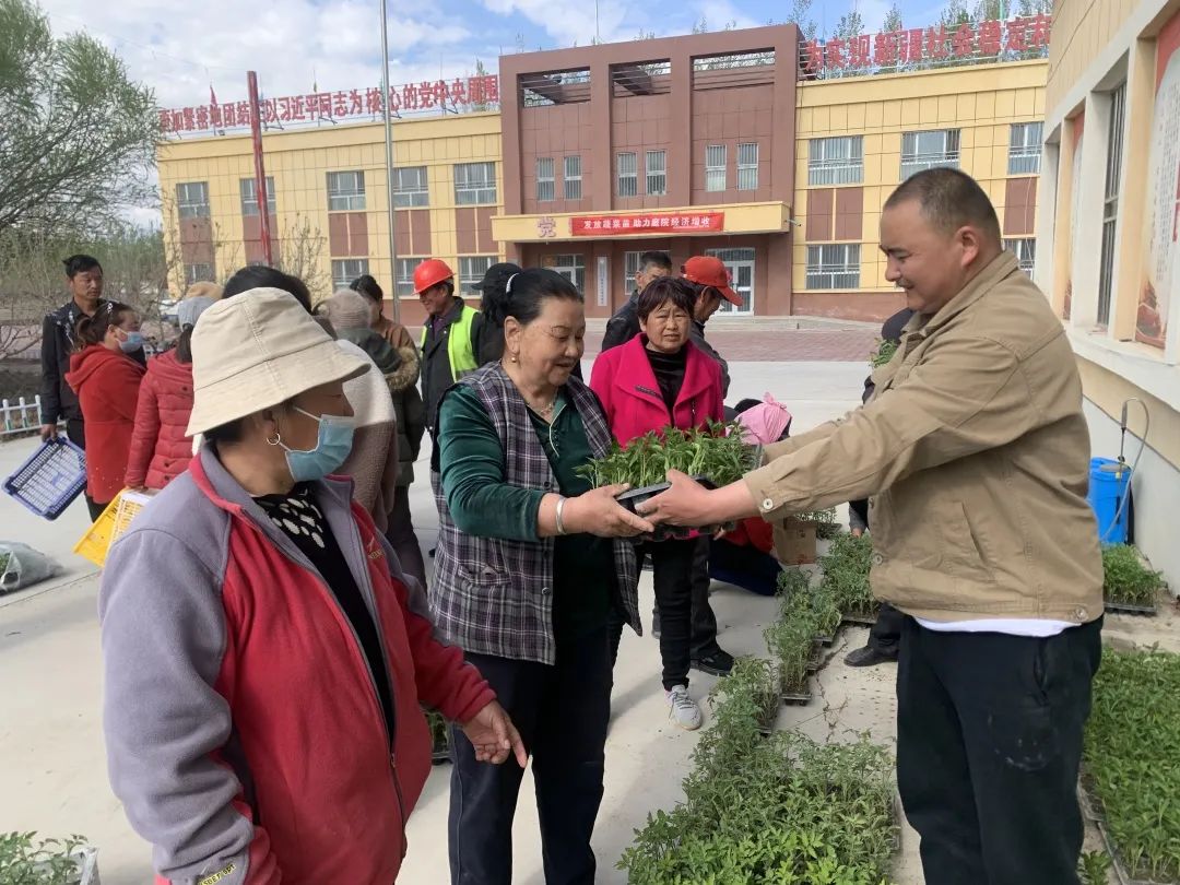 “快点走,村上在发菜苗,辣子、西红柿都有,我们去领一下……”路上的村民你一言我一语,满面喜悦地拿着小篮子来到村文化室大院。4月26日上午,托里镇乌兰旦达盖村文化室大院内热闹非凡,博州应急管理局驻村工作队和村“两委”正在为村民免费发放蔬菜苗。