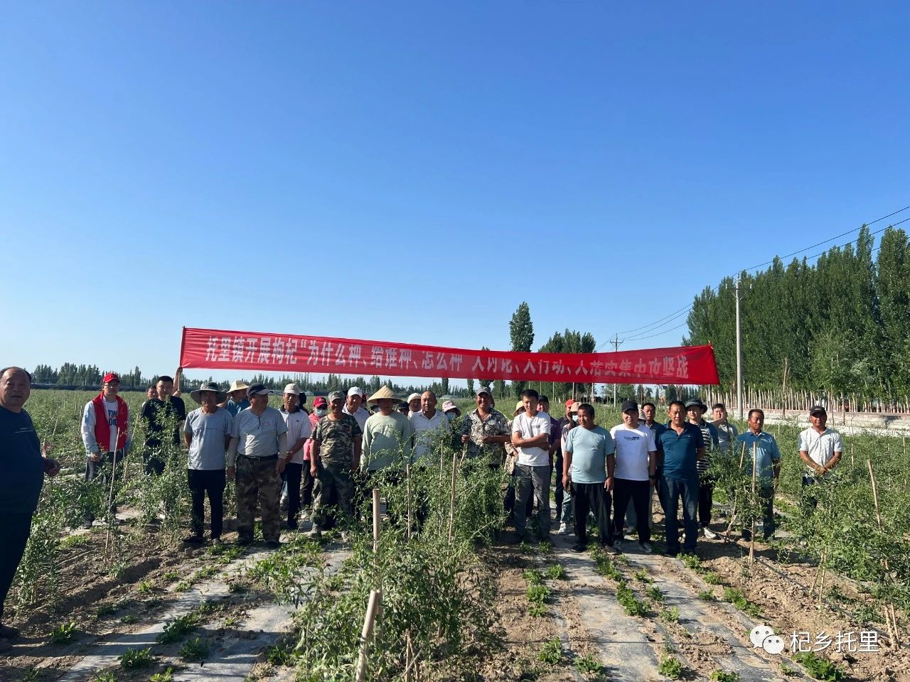 6月2日托里镇党政班子成员分别到各包联村队,组织工作队队员、村干部、领种户召开了枸杞田间管理大讨论、大研讨活动,在传达了全县田间管理现场观摩会精神后,领种户纷纷对当前县党委举全县之力、镇党委举全镇之力将枸杞定为红色产业、品牌产业、富民产业,充分展现县党委践行使命县党委践行“两个维护”,践行党的宗旨,推动改革、敢于承担政治风险和压力,不要业绩要实绩,一心为了精河人民的无私情怀有了深刻理解。