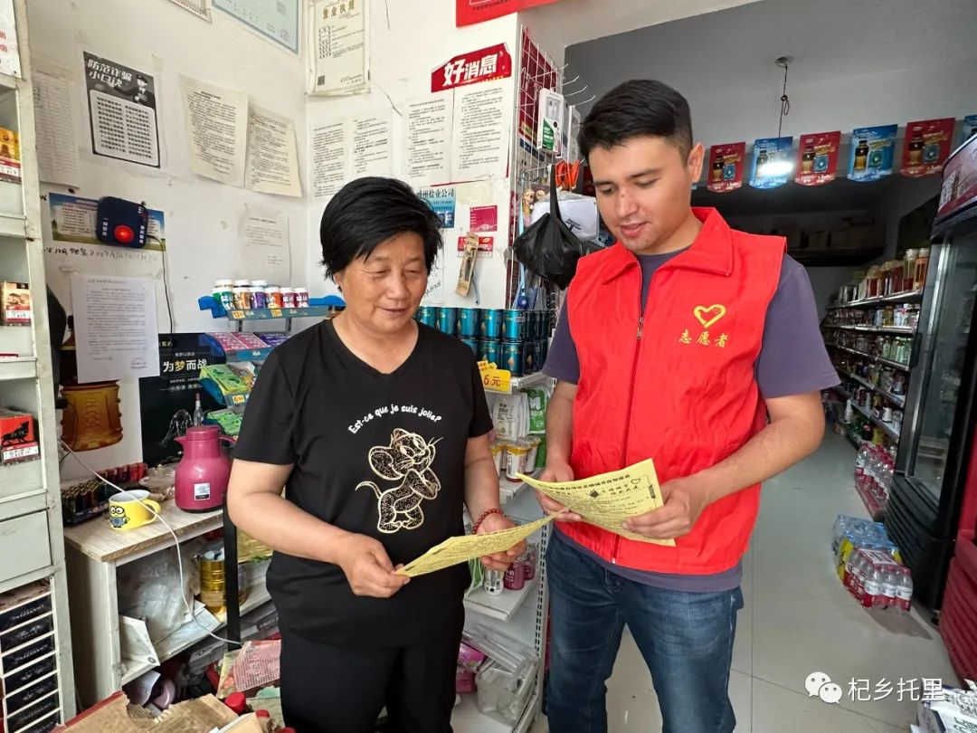 活动中,志愿者向过往群众、商铺负责人发放宣传单,讲解创建自治区文明城市有关知识、新时代文明实践工作、志愿服务等内容,引导广大群众共同参与全国文明城市创建工作。