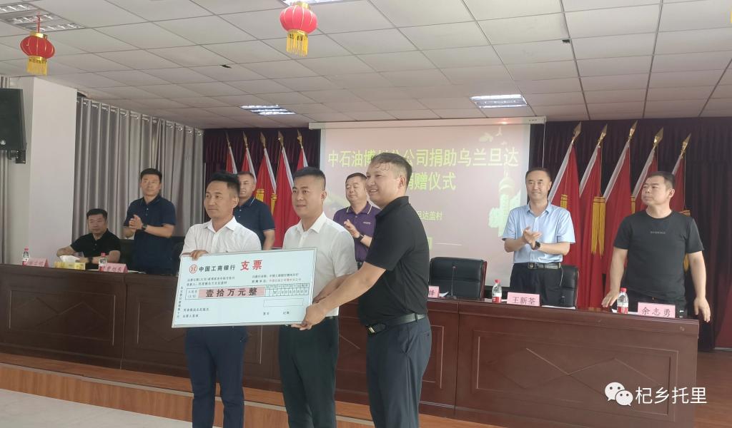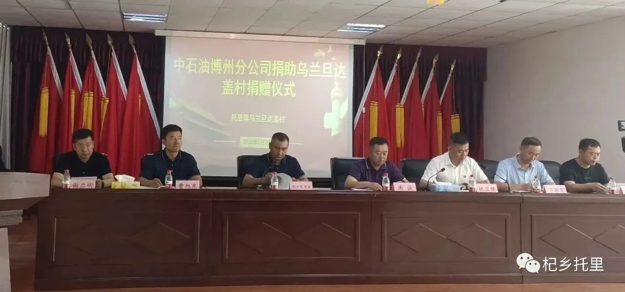 为深入贯彻落实习近平总书记关于乡村振兴的重要指示批示精神,持续巩固拓展脱贫攻坚成果,有效衔接推进乡村振兴,根据自治州“万企兴万村”工作要求,凝聚企业力量,为群众办实事。6月20日上午,中石油新疆销售公司博州分公司捐助乌兰旦达盖村捐赠仪式在精河县托里镇乌兰旦达盖村举行。博州应急管理局党委书记谢诚、中石油新疆销售公司博州分公司党委书记、总经理祝卫锋、精河县相关单位主要领导、托里镇主要领导、博州应急管理局干部及乌兰旦达盖村村两委和全体村民参加仪式。捐助仪式由精河县委常委亚尔买买提·马木提主持。