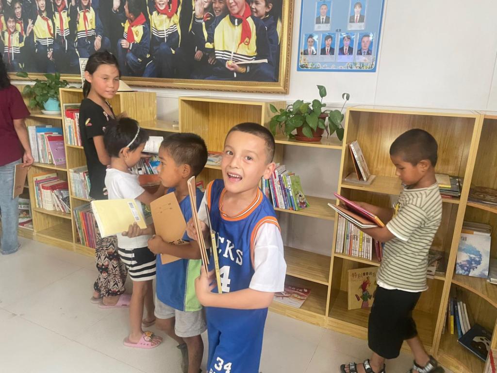 托里镇查干莫尔根村驻村工作队在开展入户走访时发现,假期里,家长们最头痛的就是孩子的学习问题。当地很多孩子在假期遇到学业难题无人辅导;部分孩子沉迷于手机,无心学习;还有的孩子在家无所事事,找不到合适的娱乐方式。为了改进以上问题,同时丰富农村孩子们的假期生活。立足村图书室等现有设施设备,托里镇查干莫尔根驻村工作队联合村“两委”,警务室,于7月6日探索开展“大手拉小手齐步向前走”为主题的假期小课堂。