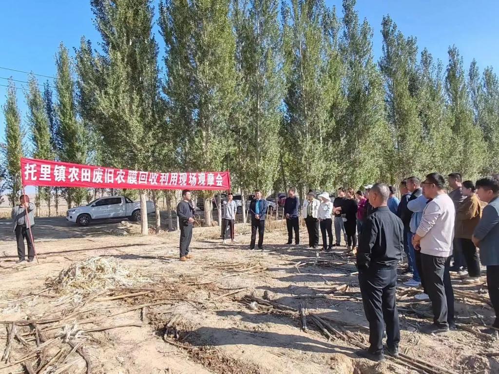 按照精河县党委、政府关于废旧地膜回收相关指示精神,为有效解决残膜危害问题,减少污染,扎实推进废旧地膜回收利用工作,全面提升耕地质量、稳定粮食生产,助力“绿色”春耕,托里镇于10月11日组织各村共计40余人在叶里斯南也肯村食葵地召开托里镇废旧地膜回收现场演示观摩会,托里镇党委副书记、镇长阿·才登巴力出席观摩会。