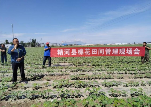 当下正值棉花田间管理的关键时节,精河县托里镇在伊克呼都格村开展棉花田间管理现场会,自治区棉花产业技术体系博乐综合实验站技术服务指导队、精河县农业农村局技术专家,各村(社区)工作人员、棉花种植户60余人参会。