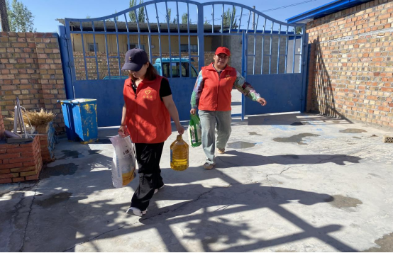 伊克呼都格村妇联和志愿者在党支部书记的带领下一同看望了生病的困难母亲和九十多岁的高龄老人三位母亲,为她们送去了食用油、面、米,每到一家都与她们进行交谈,仔细询问困难母亲的生活状况、身体状况,了解她们在生活中遇到的困难和需要解决的问题,让她们真切感受到党和妇联的温暖。