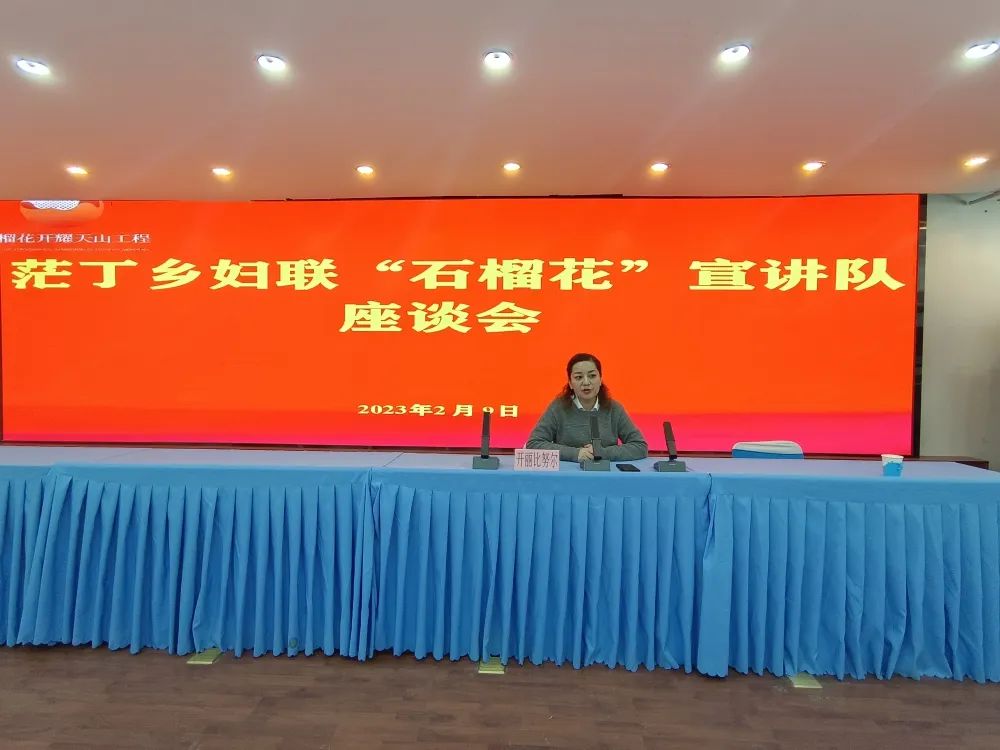 为进一步宣传贯彻、推动党的二十大精神在基层落地生根、开花结果,让妇女群众听得懂、能领会、可落实,使党的二十大精神飞进寻常百姓家,2月9日茫丁乡妇联组织各村妇联主席、巾帼宣讲队以及妇女代表,以“县、乡、村”三级“石榴花”巾帼宣讲队为依托在茫丁乡政府会议室举办了“石榴花开耀天山 巾帼建功新征程”为主题的系列宣讲培训活动,活动邀请了县妇联主席李红霞同志、博州爱博律师事务所律师周丽律师、乡统战办主任阿扎提同志为大家授课,共计100余人参加了今天的培训;培训会由乡人民政府副乡长红杜丝同志主持。