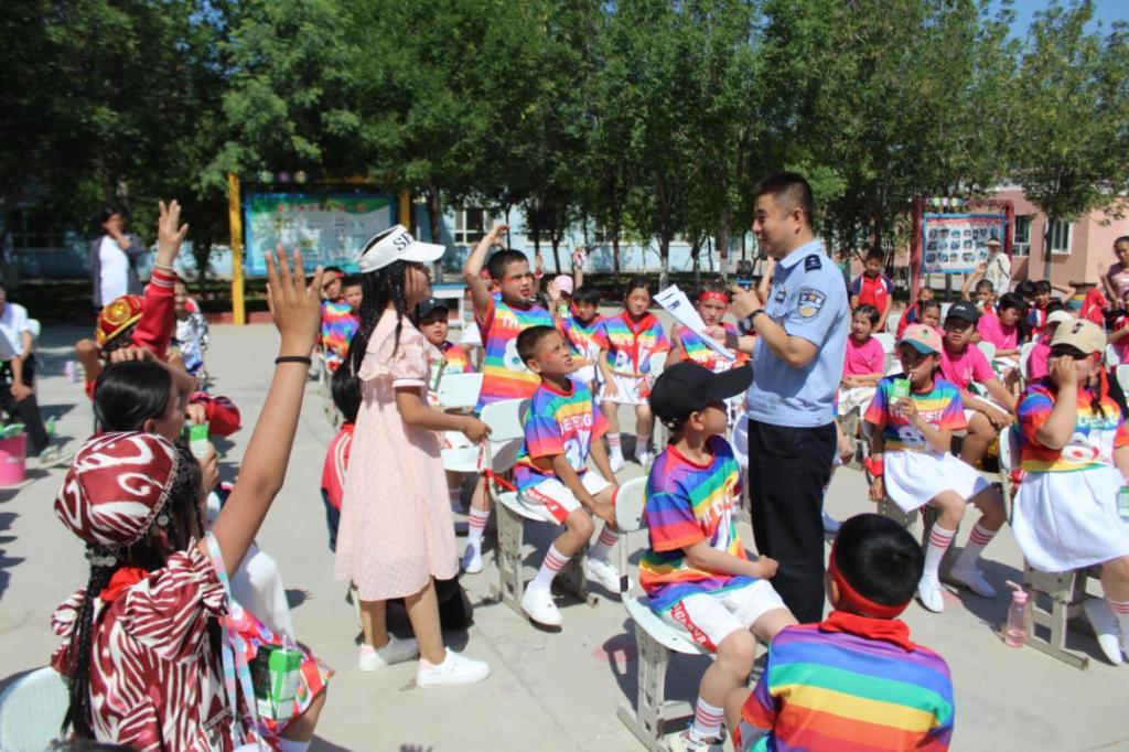 活动中,所长赵小军对孩子们送上了节日的祝福,并为优秀学生代表赠送了书包、铅笔、学习本等慰问品。期间,民警用通俗易懂的语言讲授了防骗、防拐等方面的法律知识,就如何正确拨打报警电话,让同学们有效地保护自己进行了引导。同时围绕毒品的概念、种类、毒品的危害与师生交流互动,并发放纪念品。