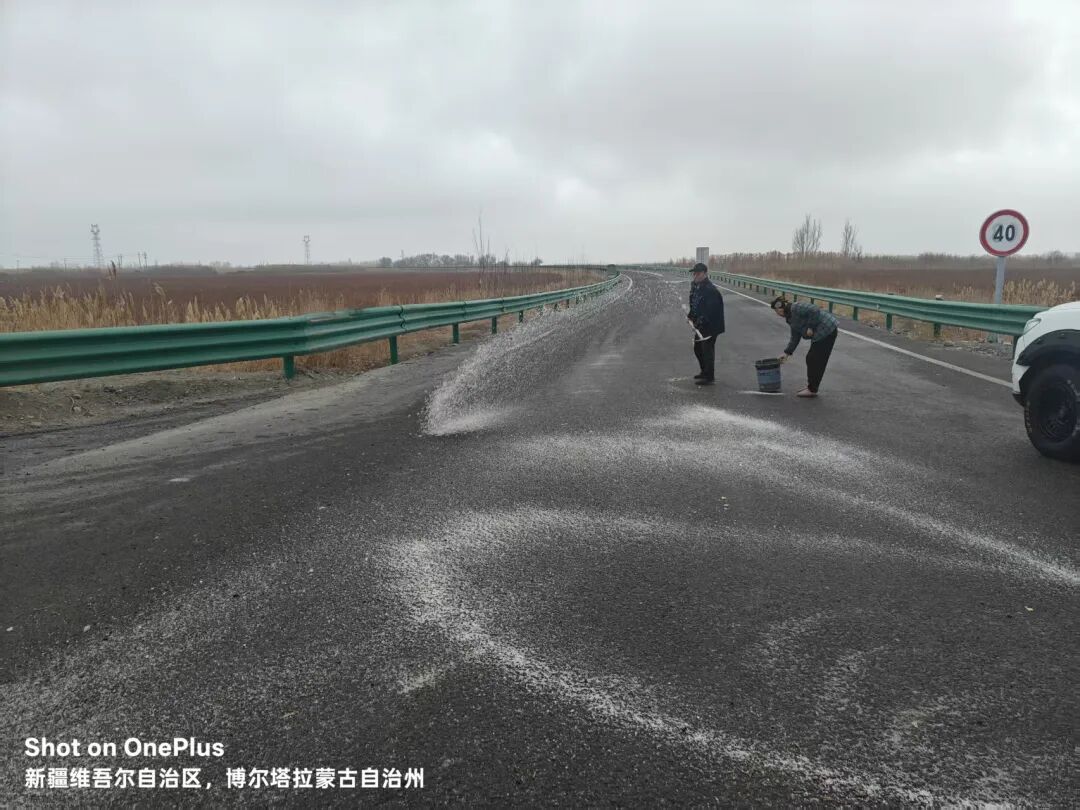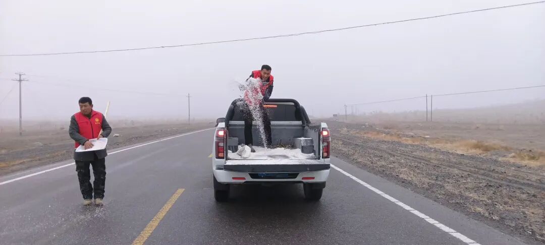 除冰保畅,一线攻坚打通“民生路”。聚焦辖区主干道、交通要道、村内关键路段及坡道、弯道等易结冰风险点,乡村干部冲锋在前,带领应急队伍开展融冰除险作业。皇宫南村、巴音阿门村等迅速行动,采取“人工撒布+机械辅助”“定点清除+动态巡查”相结合的方式,高效使用融雪剂清除路面结冰,及时恢复了道路安全通行条件,确保了群众出行安全和重要生产生活物资运输畅通。