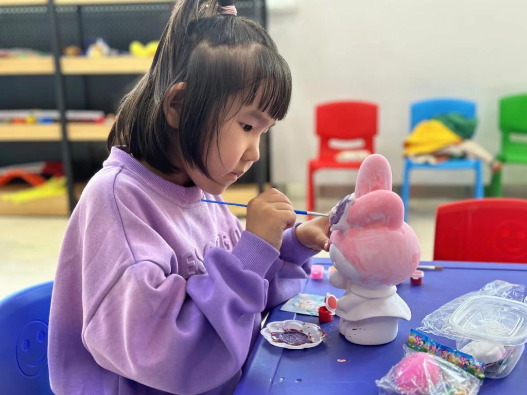 活动伊始,大家纷纷提起画笔,给每一个石膏娃娃都抹上色彩,一笔一墨勾画出独一无二的作品。塑白无意,画有乾坤。无情之物被赋予了生命,活灵活现的展现在大家的面前。用艺术作品为媒,点缀了大家的亲子时光。