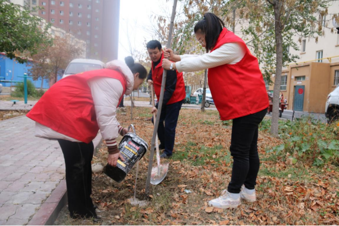为践行“绿水青山就是金山银山”的理念,美化环境,增强居民爱绿、护绿意识,打造宜居绿色家园,10月31日,精河县精河镇绿园社区开展植树活动,辖区党员干部及兵诚物业工作人员积极加入植树队伍,为家园再添新绿。