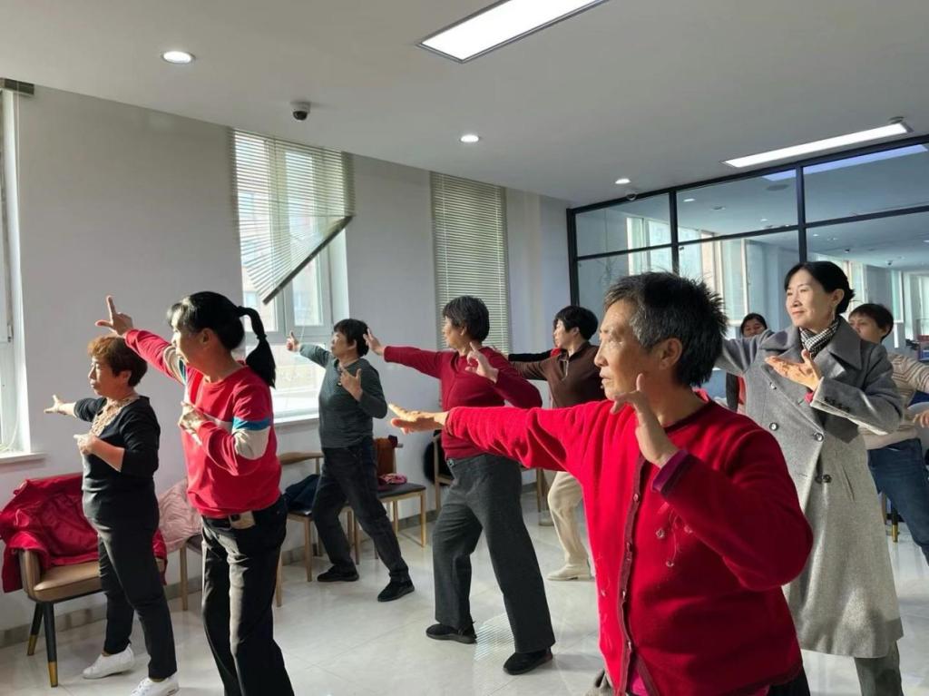 活动伊始,指导老师张老师详细讲述八段锦的相关知识:八段锦,是一个优秀的中国传统保健功法。它动作简单易行,功效显著。另外,此功法共为八段,每段一个动作。老人们认真聆听,并热情讨论。接下来,张老师进行实践教学,展示相关动作。整套动作柔和连绵、华丽流畅、有松有紧、动静相兼。