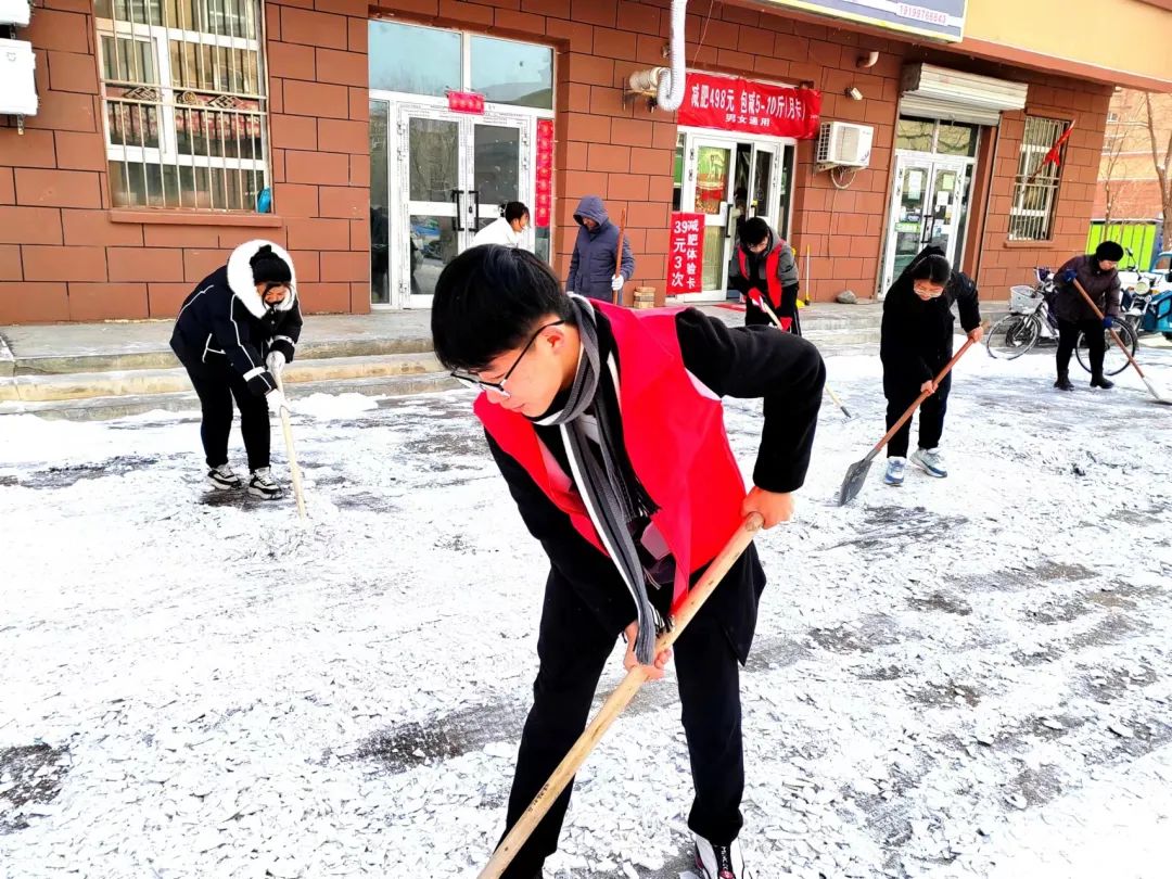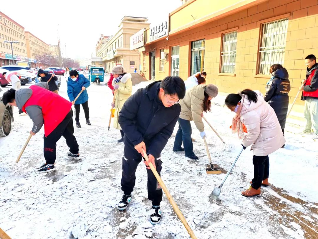 为防止天寒冰雪滑,方便居民出行,近日,精河镇锦福社区组织全体党员干部、居民志愿者、返乡学生在小区内开展清雪志愿服务活动。