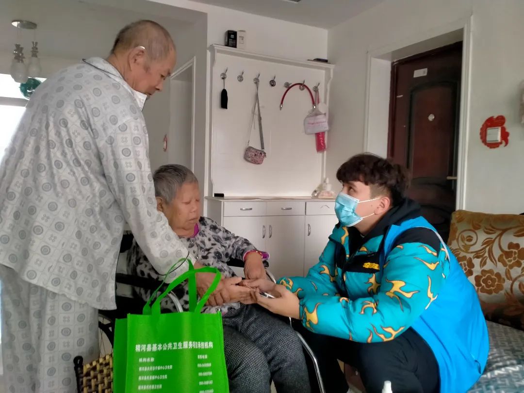 社区心系老年人,2月5日上午,精河镇云展社区联合社区卫生服务中心医护人员,为辖区老人们开展“敲门送诊”,送医上门的贴心服务。