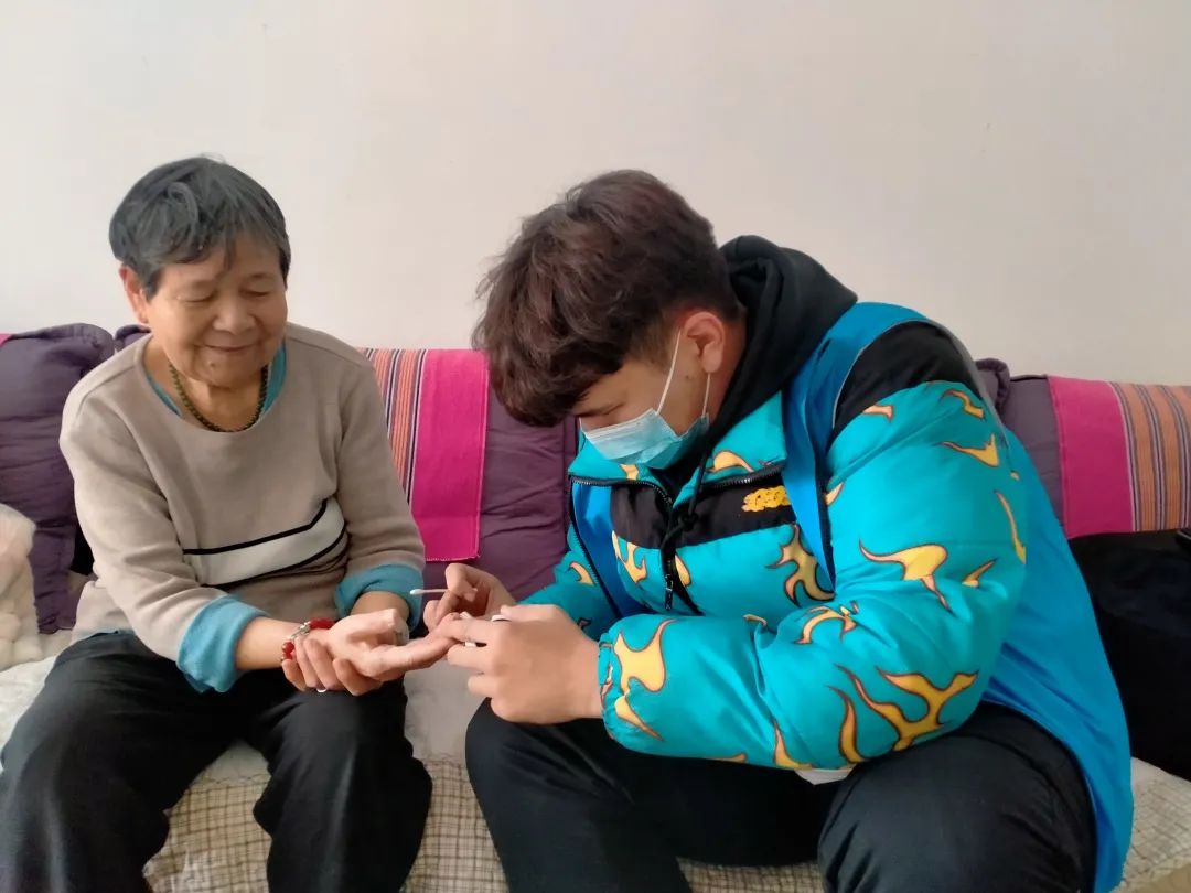 “大妈,您哪里不舒服?”“大爷您平时吃什么药?”志愿者们携带血糖仪、血压计,每到一户,医护人员都会与老人亲切交谈,详细询问老人的生活和身体状况,为老人进行量血压、测血糖等健康检测检查,同时,有针对性的从日常生活饮食、起居等方面给予老人专业的指导意见。