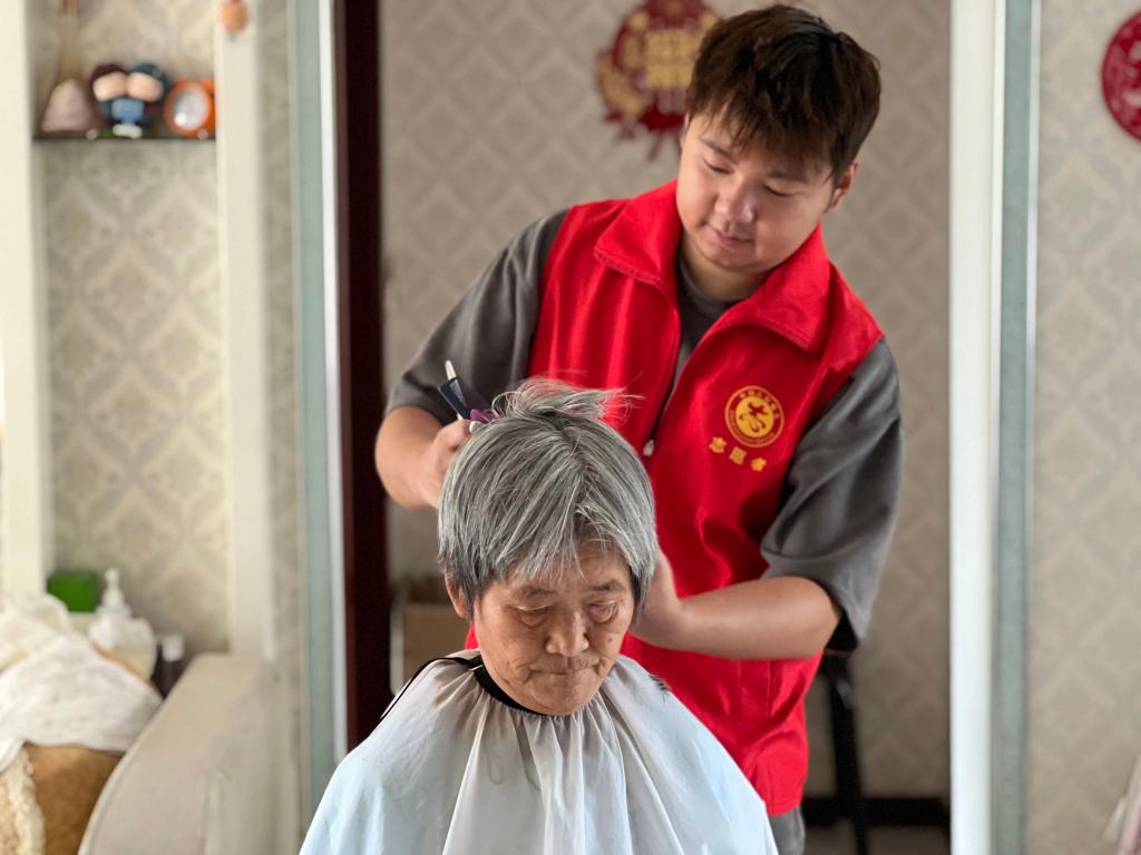 活动当天,社区工作人员和志愿者来到老人家中,志愿者一边与老人唠着家常,一边熟练地为他们理发。一把剪子、一把推子、一把梳子、一块围布,齐全的工具,真挚的爱心……随着志愿理发师的巧手修剪,利落清爽的新发型让老人精神焕发,贴心的服务让老人们都露出开心的笑容。