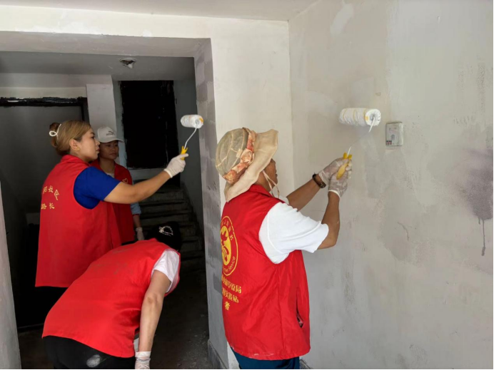 “经过这么一粉刷,楼道变得亮堂起来,心情也随之愉悦起来,看着亮堂,住着舒心。”精河县精河镇东城社区居民孙天山看着粉刷后的楼道高兴地说。