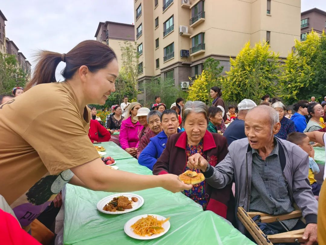 在品尝美食的环节,辖区商户自发带来了各类特色美食,肉饼子、麻辣香锅、烤包子、包尔萨克、石头焖肉、椒麻大盘鸡、葱花饼、抓饭等十余种琳琅满目的佳肴和饮料,香气四溢,吸引了众多居民驻足品尝。大家边吃边聊,分享烹饪经验,还评选出了自己心中的“最美味”菜肴。