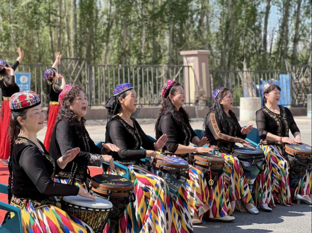 活动在欢快的维吾尔族传统鼓点中拉开序幕。舞蹈《天山月亮》以曼妙舞姿展现雪域高原的独特风情,赢得观众热烈掌声;现代舞《春之歌》通过灵动舞步演绎春日生机,令人耳目一新;健身气舞《我的祖国》刚柔并济,生动展现劳动者昂扬向上的精神风貌。鼓乐伴舞《新疆美》以热情奔放的节奏将演出推向高潮,艺术化呈现各族儿女团结奋进的时代画卷;压轴舞蹈《乌鲁木齐我爱你》用真挚情感抒发了对家乡的深情眷恋。整场演出在经久不息的掌声中圆满落幕。