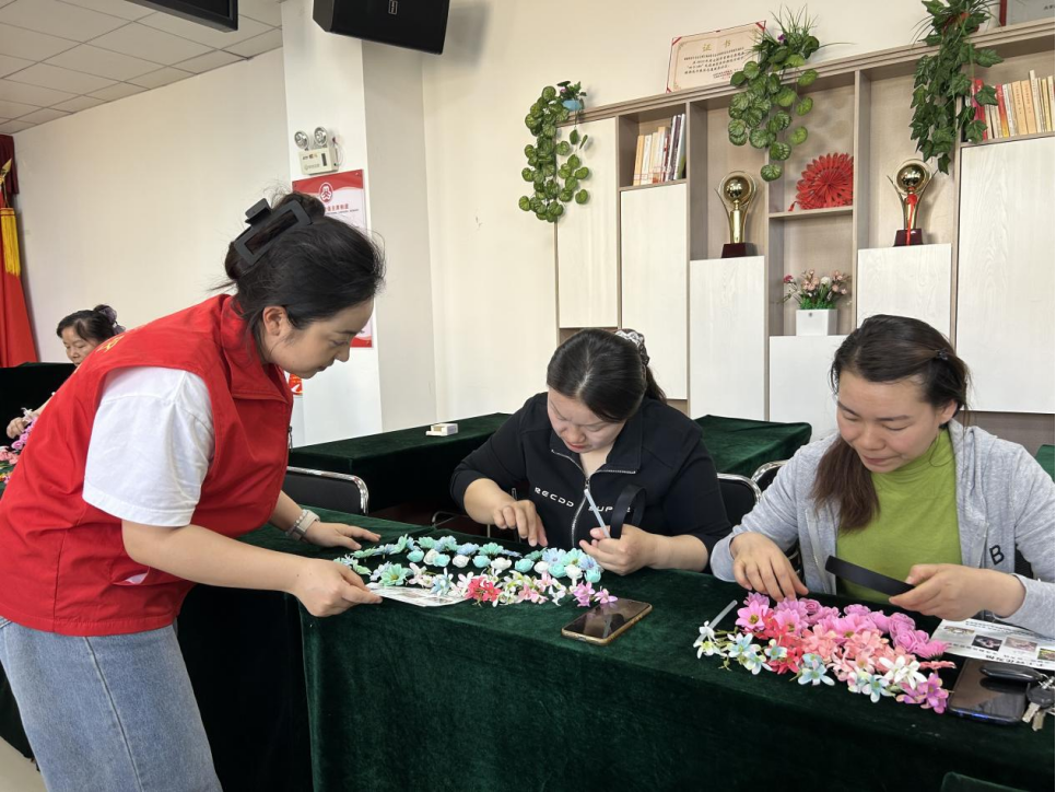 5月7日,东城社区开展“簪花为礼·情暖萱草”手工发箍制作活动。居民们专注搭配仿真花、丝带与珠饰,将普通发箍变为精致头饰。社区用镜头定格了妈妈们的自信笑容,倡导“爱他人亦要爱自己”的生活理念。