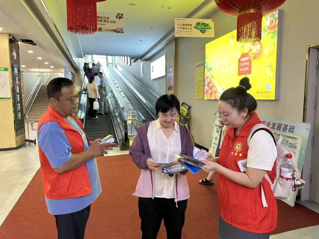 活动期间,社区干部走进辖区爱尚家超市,向过往群众发放精心制作的宣传折页。安全生产折页聚焦家庭用电用气安全、火灾预防等内容,用漫画形式展示常见隐患与正确处理方法;防电信诈骗折页则罗列了“刷单返利”“冒充客服”等高发诈骗类型的特点与防范要点,提醒居民时刻保持警惕;民法典折页则选取婚姻家庭、财产继承等与生活息息相关的法律条款,以通俗易懂的语言进行解读。