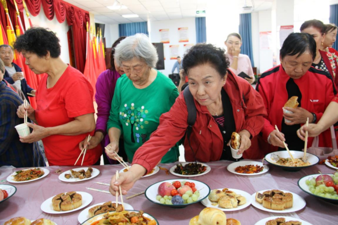 活动在合唱《军民大生产》中拉开帷幕,熟悉的旋律瞬间点燃全场热情。随后,社区老年人团队带来幽默表演《活宝》,老人们将日常生活趣事搬上舞台,逗得台下观众笑声不断。社区干部也化身“表演者”,以饱含深情的诗歌朗诵《祖国,我亲爱的祖国》,诉说对祖国母亲的无限热爱与祝福。大家围坐在一起,一边品尝香甜的美食,一边交流观看演出的感受,现场温馨又热闹,邻里情谊在欢声笑语中不断升温。