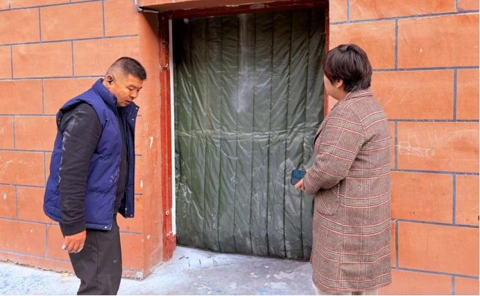 【我为群众办实事 】社区为居民楼装御寒门帘,寒冬暖意从 “进门” 开始