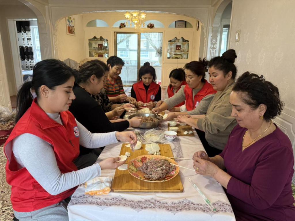 与此同时,康宁社区新时代文明实践站内,一场“立冬暖饺传情 敬老爱老暖心间”的活动正热火朝天地进行。社区志愿者们早早备好食材,辖区各族老人围坐一堂,揉面、擀皮、包馅,动作娴熟,配合默契。大家一边包着饺子,一边分享生活趣事,欢声笑语不断。热气腾腾的饺子出锅,香气弥漫。大家围坐品尝,脸上洋溢着幸福的笑容。社区志愿者们不忘将这份温暖延伸,为行动不便的老人打包饺子,送暖上门,确保每位老人都能及时感受到这份立冬的关怀。此次活动在欢声笑语中拉近了社区与居民之间的距离,用实际行动凝聚起强大的社区向心力。