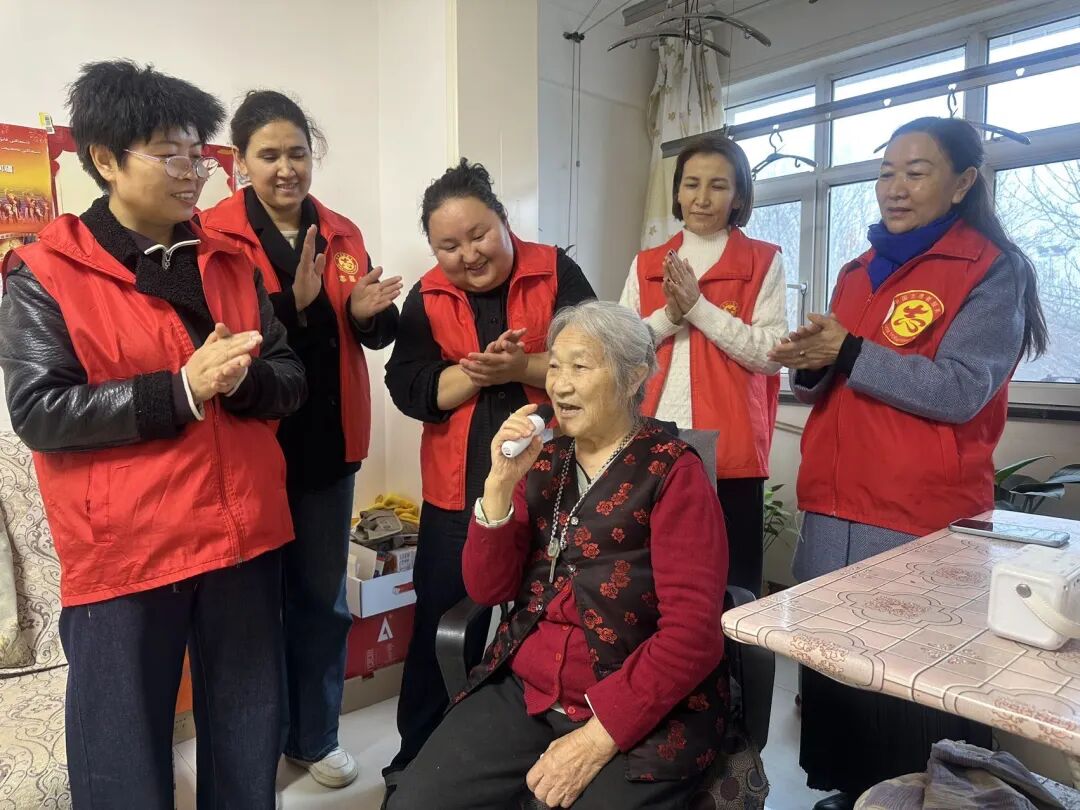 “奶奶,我们来帮您打扫房间、整理厚衣服啦!”云展社区的干部们带着笑容叩响了雷玉珍奶奶的家门。门内传来奶奶欣喜地回应。一进屋,大家就忙活开来:有人仔细打扫每个角落,有人认真整理衣柜,还有人把奶奶最爱穿的枣红色棉袄挂在最容易拿到的地方。收拾完毕时,雷奶奶兴致勃勃地提议:“唱首歌给你们听吧!”她清了清嗓子,老伴贺爷爷默契打开音响。“敢问路在何方~路在脚下。”一曲终了,掌声响起,奶奶紧握着社区干部的手,动情地说:“你们一来,屋子干净了,心里也暖烘烘的,比穿新棉袄还舒服。”这一刻,志愿者们明白,他们整理的不仅是衣物与房间,更是老人对生活的热爱,而老人唱出的也不仅是旋律,更是岁月沉淀下的真情。这份双向的温暖,让初冬的寒意悄然退散。