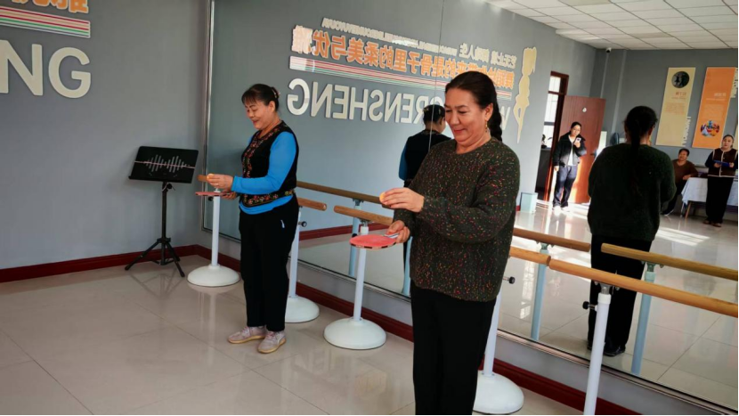 与此同时,掌上乒乓球赛也如火如荼地进行。选手们使用迷你球拍,在课桌大小的球台上展开精彩对决。尽管场地小巧,但比赛节奏紧凑,对抗激烈。居民宋莲芳与肉孜完·艾尼娃的对决尤为精彩,乒乓球在两人之间快速往返,引来观众连连喝彩。最终,肉孜完·艾尼娃获胜,她热情地拉起宋莲芳的手说:“下次我教您反手技巧!”。