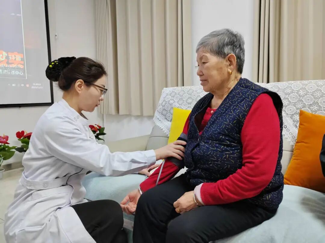 这边健康讲座刚开讲,另一边“移动诊室”早已出发!针对社区高龄、行动不便的老人,医生与社区志愿者组成“上门服务小队”,携带血压计敲响居民家门。“张香云奶奶,我们来给您量血压、号脉啦!”医护人员细心测量血压、询问病史,耐心调整用药方案,反复叮嘱家属日常照料要点。83岁的张绍冉爷爷腿脚不便,拉着医生的手连连道谢:“不用出门就能看专家,你们真是把健康送到心坎里了!”