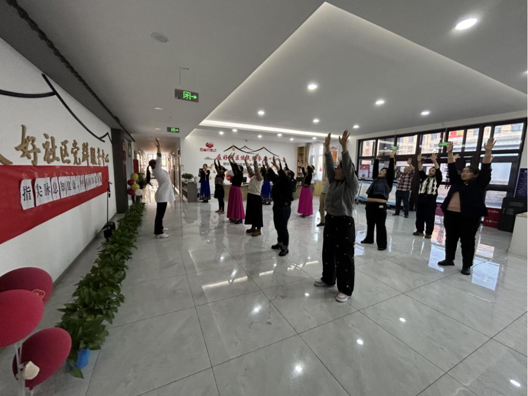 活动现场最具人气的环节是八段锦教学体验区。赵佩琪医生带领居民们一招一式地练习,从“两手托天理三焦”到“背后七颠百病消”,每一个动作都讲解得细致入微。大家跟着医生舒展筋骨、调和呼吸,原本略显寒冷的活动室里,渐渐洋溢起阵阵暖意。“这样的活动太贴心了!不用跑医院,在家门口就能看中医、学养生,大夫说的方法都特别实用,我回家就照着做。”刚做完脉诊的安春英阿姨笑着说道。居民们纷纷表示,此次活动不仅让大家学到了专业的冬季养生知识,更感受到了社区的关怀与温暖。