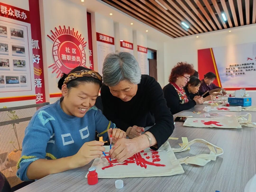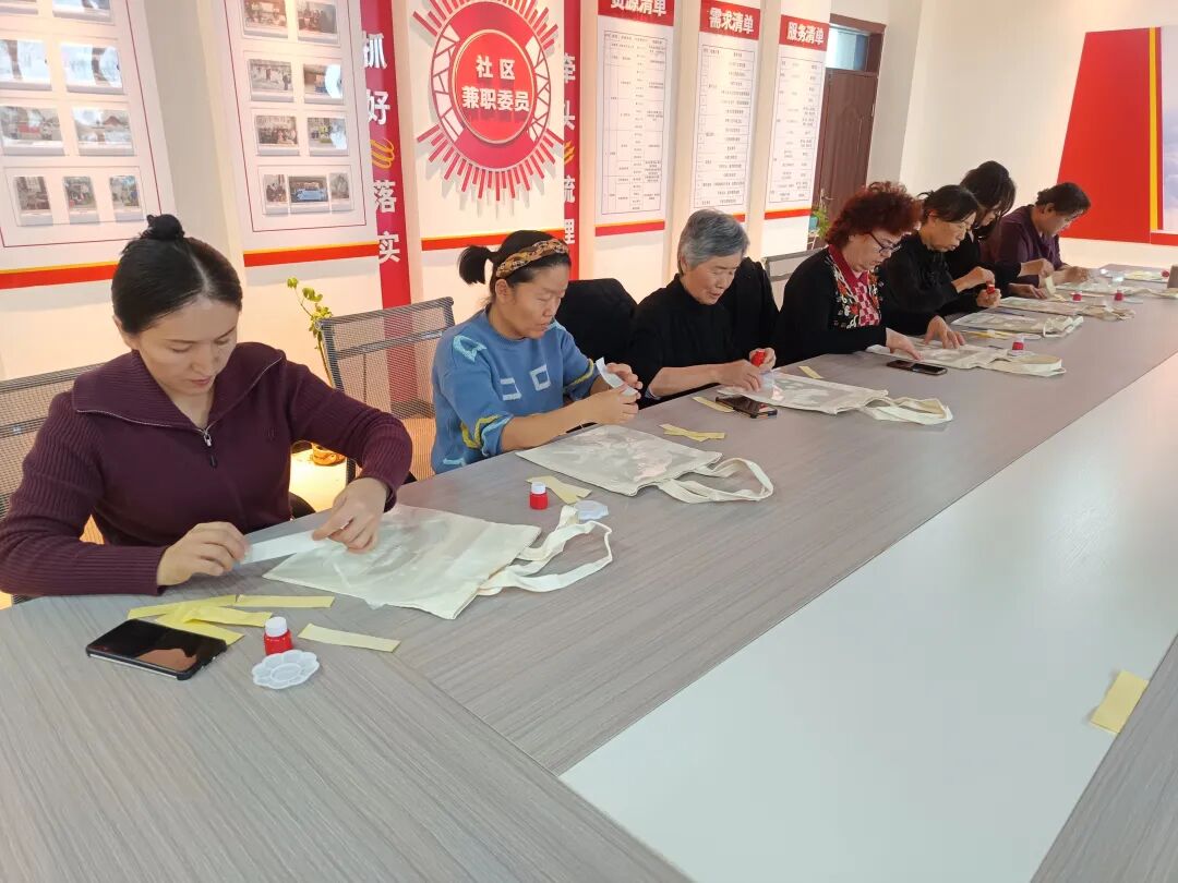 活动现场准备了空白帆布袋、拓印模板、红色颜料及配套工具。在志愿者耐心指导下,居民们亲手拓印出“天安门”“盛世中华”等具有爱国意义的图案,将朴素帆布袋转化为寄托家国情怀的独特作品。