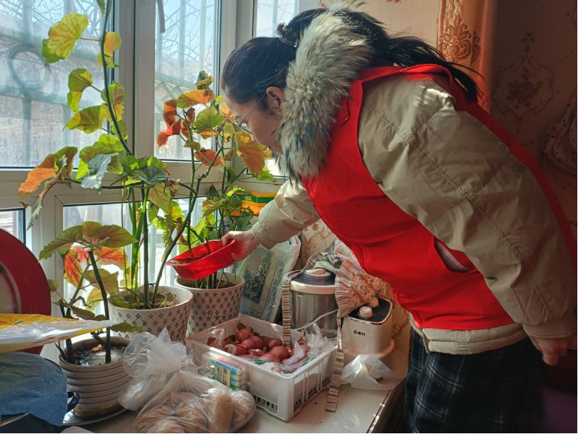“这些蔬菜都帮您放到厨房了,饭后记得按时吃药,出门散散步,有助于消化。”一句句贴心叮嘱,一声声温情问候,让春日的绿园社区暖意融融。