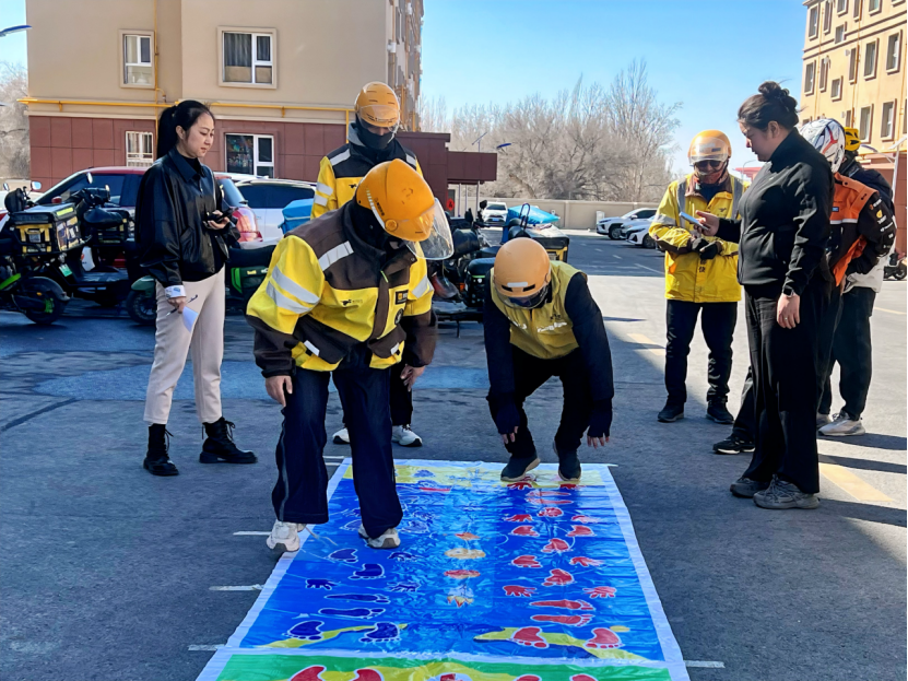 3月25日下午,精河镇幸福社区携手精河县总工会、精河县精诚社会工作服务中心,在社区门口共同举办了“暖‘新’聚力·趣享活力”外卖小哥趣味运动会。活动吸引了辖区内众多奔波在一线的外卖骑手、快递员等新就业群体劳动者热情参与,大家在欢声笑语中放松心情、增进交流。